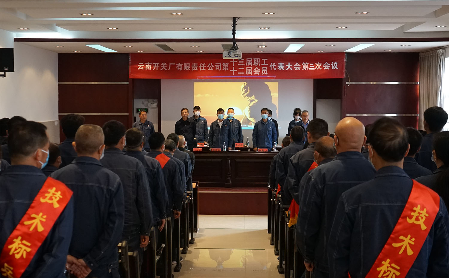 云南开关厂有限责任公司第十三届职工暨十二届会员代表大会第三次会议于2023年3月27日在公司多功能厅召开。应到正式代表78人,实到69人,16位列席代表以及受表彰的非代表标兵参加会议。