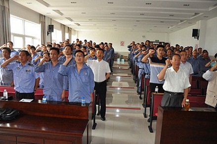 会议开始,全体党员高唱《国歌》,面对党旗重温入党誓词,向伟大的党作庄严宣誓。