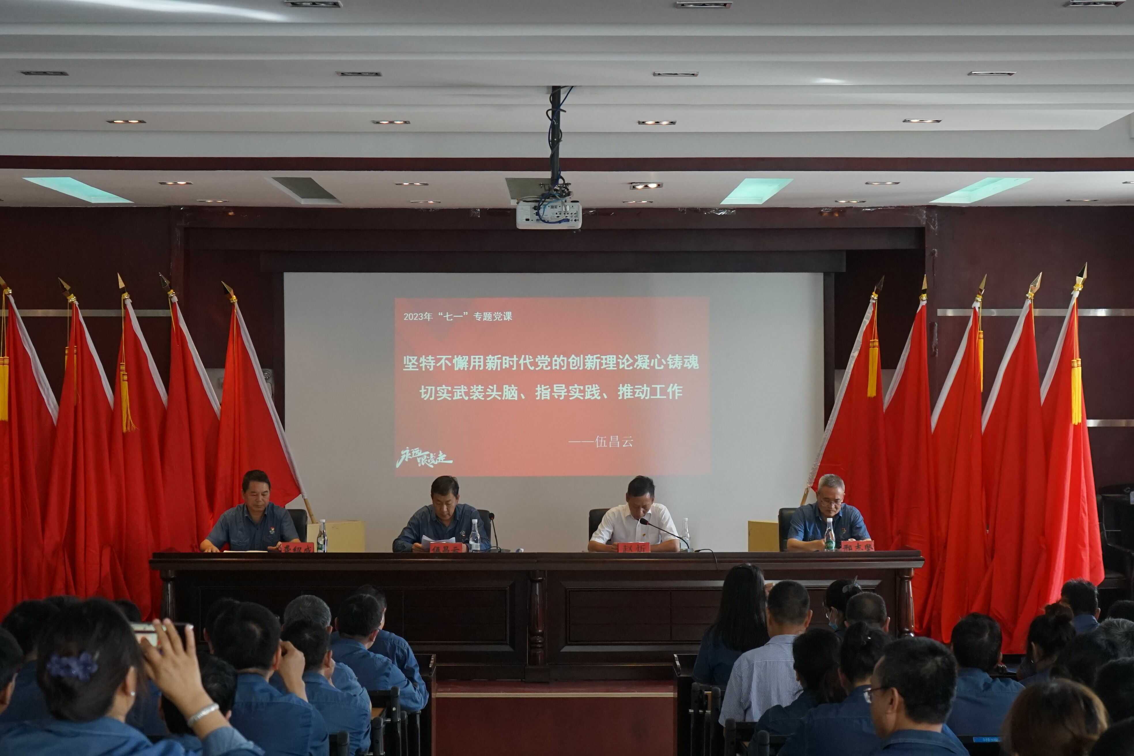 庆祝大会在全体党员高唱《中华人民共和国国歌》声中拉开序幕。公司党委书记、董事长伍昌云同志带领全体党员重温入党誓词。宣誓完后,伍昌云同志主讲“坚持不懈用新时代党的创新理论凝心铸魂,切实武装头脑,指导实践推动工作”专题党课。号召我们每个党员同志要认真学习贯彻习近平新时代中国特色社会主义思想,紧紧围绕“学思想、强党性、重实践、建新功”总要求,用党的创新理论统一思想、统一意志、统一行动,不断提高运用科学理论解决企业实际问题的能力,力争在三年内要在“董事会治理效能、依法合规治企、增强市场及营销能力、技术创新能力提升及成本管控全过程”等六个方面的专项行动提升做了全面解读,要求全体党员、干部为推动云开公司改革发展打牢坚实基础,为实现公司既定目标任务而努力奋斗!