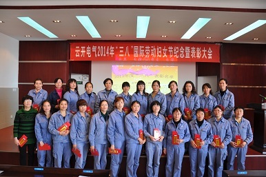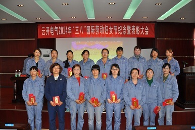 3月6日下午,云南云开电气股份有限公司纪念三八国际劳动妇女节104周年暨表彰大会,在公司八分厂阶梯教室隆重举行。公司党委、工会主要领导亲临会议。工会女职工委员会委员、14个分工会的女工委主任(委员)、受表彰对象、女职工代表等80多人参加大会。会上,公司党委书记、工会主席作了重要讲话。伍主席说:云开共有在职女职工265人,占职工总数的31.85%。他高度肯定女职工在公司生产经营中的重要作用,并号召广大女职工要全面提高素质,在企业生产经营、新产品研发、市场开拓工作中建功立业,要求工会及分工会女工委要围绕生产经营目标,深化“巾帼建功”活动,继续发扬吃苦耐劳的精神,携手努力,共同谱写云开发展新篇章。