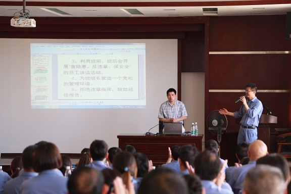 日,云南云开电气股份有限公司邀请四川省宜宾威力化工有限责任公司企管质量部部长李树彬(高级工程师、一级安全评价师、注册安全工程师)安全生产专家,围绕班组长、安全员在企业管理中的地位、使命、重要作用,班组长、安全员的职责和工作技巧以及班组安全文化建设等内容,组织全公司班组长、安全员共